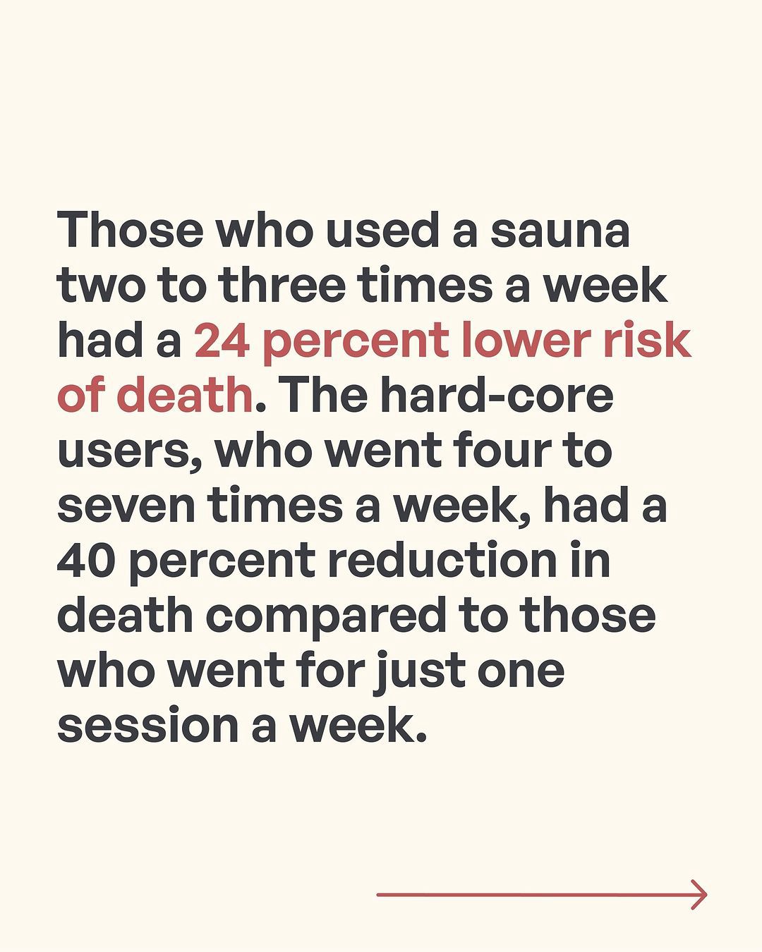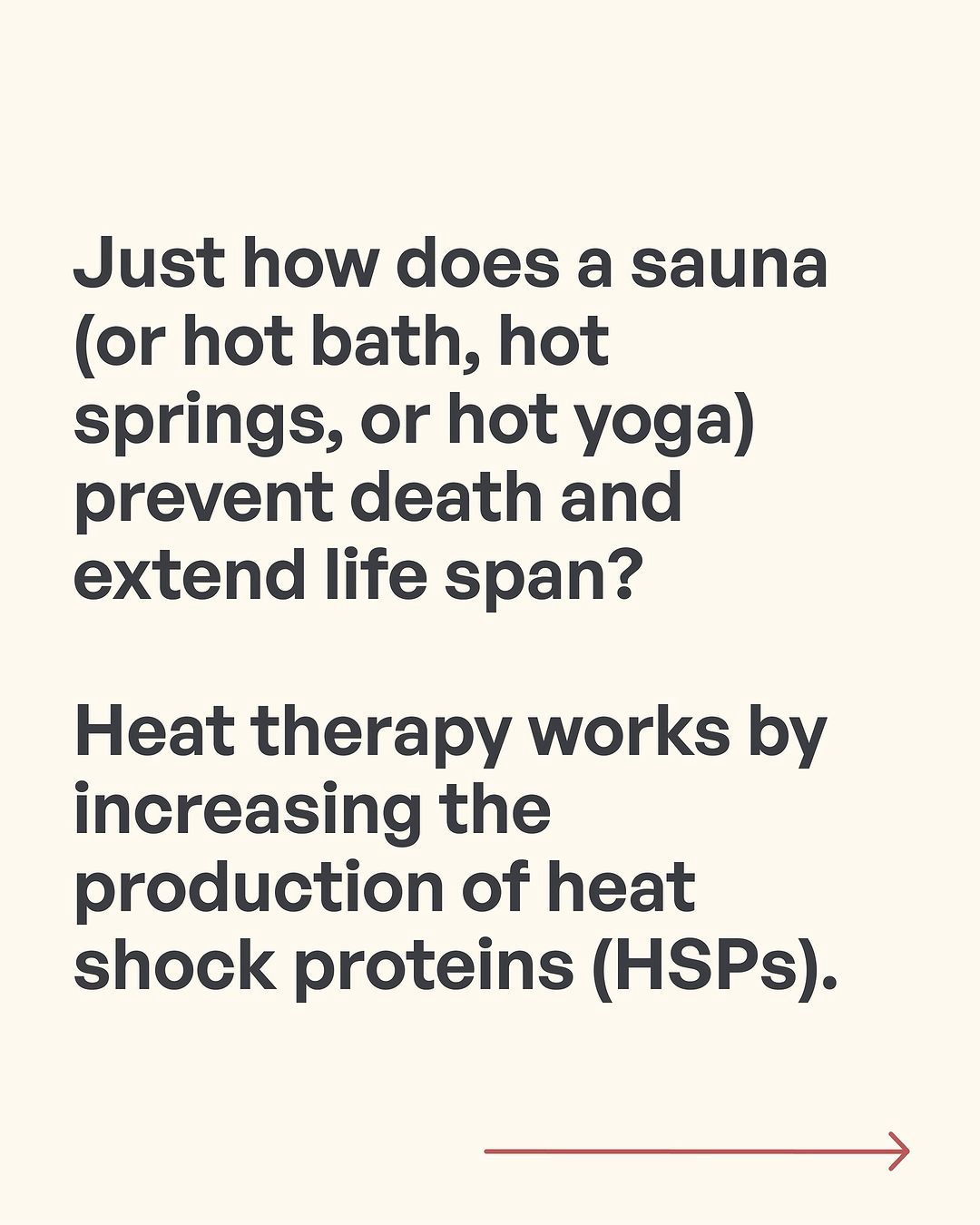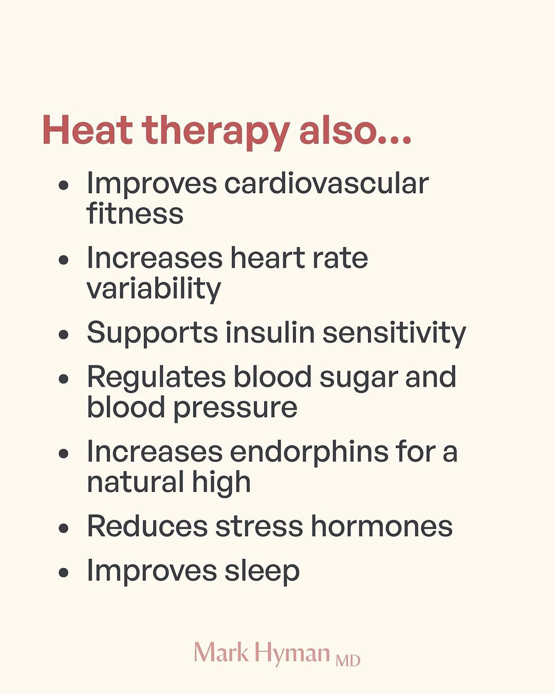 Any type of heat therapy works, including saunas, infrared saunas, steams, hot baths, hot springs, and even hot yoga! Finding a way—even just a hot bath—to regularly boost your temperature is an easy, cheap, and rejuvenating strategy to improve your #Healthspan Advocates and address the root causes of aging.